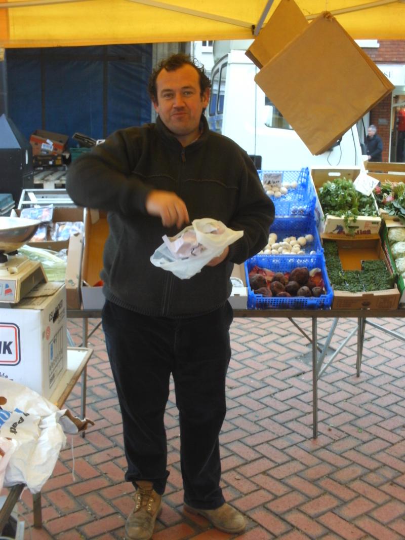 The friendly face of Joe Hennessy at his greengrocery stall.